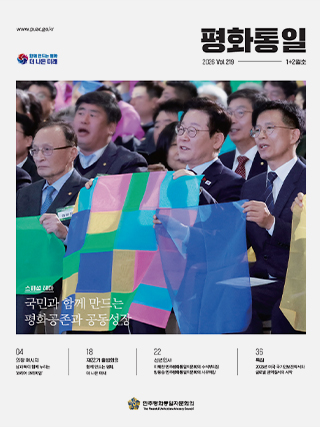 문화 & 피플 평화를 꿈꾸는 사람들 남북 어린이가 어깨동무하는 내일을 만들어 가다 어린이어깨동무 희망의 발걸음 고난의 시간은 새로운 삶을 위한 신의 뜻이었으리 송지영 국립평화통일민주교육원 강사 트렌드로 보는 북한 ‘마이카 시대’가 열린 북한, 욕망의 분출이 시작된다 평화통일 명소 강원에서 이어지는 통일 공감의 플랫폼 강원권통일플러스센터 영화 속 한반도 이야기 남북 분단과 통일을 둘러싼 세 가지 단편 서사 <우리 지금 만나> 뉴스 & 소식 평화통일 소식 시민과 함께하는 2025 안산 하나! 통일골든벨 외 평화통일 우체통 평통 우체통 평화통일 큐레이션 민주평통 SNS 손고리즘 추천 영상 평화통일 칼럼 장철운 | 이재명 정부 대북정책의 3×3 구조와 추진 방향