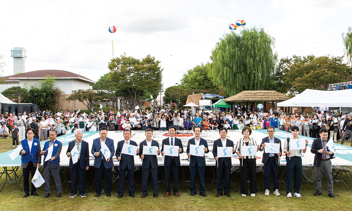 지역 농·특산물을 활용해 김제 시민 및 김제지평선축제 관광객과 함께 한반도의 평화와 통일을 기원하는 대형 모자이크 작품을 만드는 행사인 ‘지평선 평화통일 페스티벌’이 올해로 16회째를 맞았다. 광복 80주년을 기념하는 특별한 작품에 감동한 사람들은 한반도기를 흔들고 ‘우리의 소원은 통일’을 합창하며 평화와 통일에 힘을 보태겠다고 다짐했다.