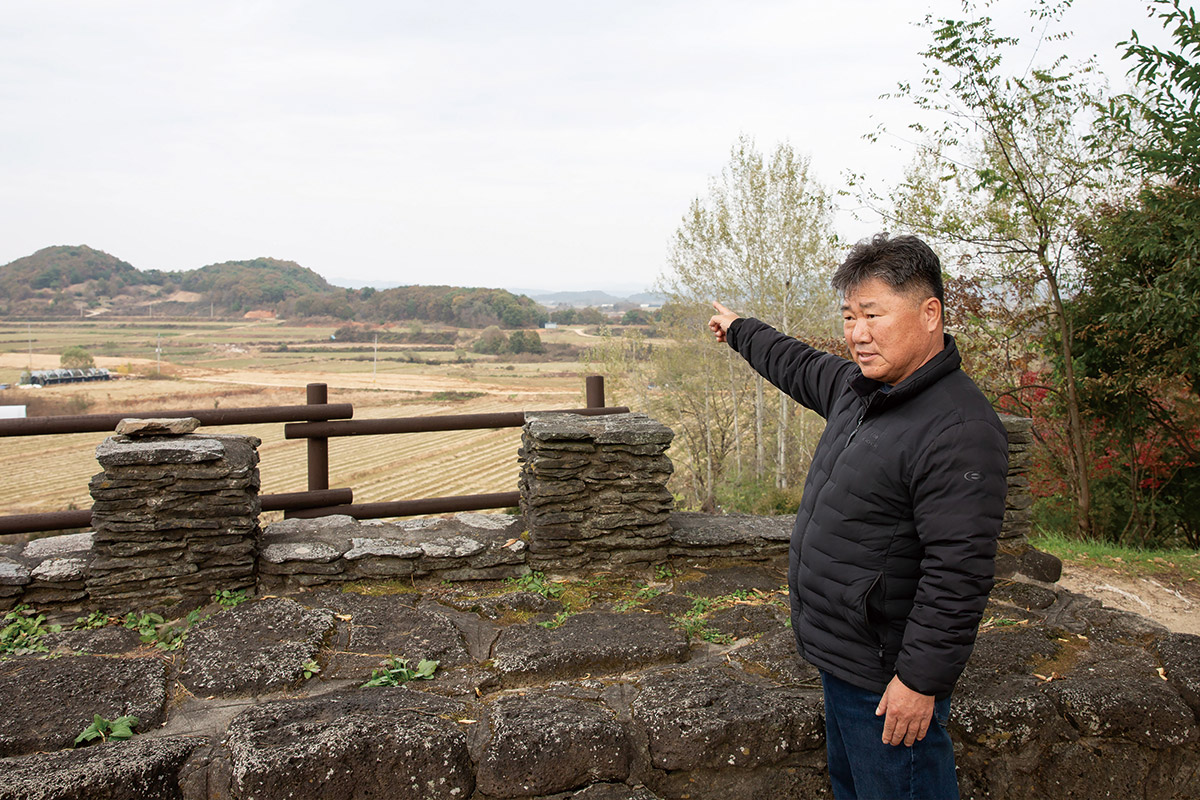 대신 위재호 회장은 인근에 자리한 백마고지 전적지로 취재진을 안내했다. 철원군 산명리에 위치한 이곳은 1952년 10월 철원평야의 요충지인 백마고지(395고지)를 쟁탈하기 위해 국군과 중공군이 처절하게 싸운 끝에 방어에 성공한 백마고지 전투의 전과와 당시 군인들의 희생을 기리고자 조성됐다. 위재호 회장이 “전망대까지 오르면 민통선 내 철원평야가 내려다보인다”며 양편으로 태극기가 나부끼는 언덕길로 향했다. 백마고지 위령비와 기념관을 지나 옷 안쪽에 훈훈한 기운이 감돌기 시작할 무렵, 백마고지 전승탑과 추수를 마친 너른 들판이 한눈에 들어왔다. 위재호 회장이 “종종 이곳으로 산책을 온다”며 눈앞의 풍경을 차근차근 설명했다.