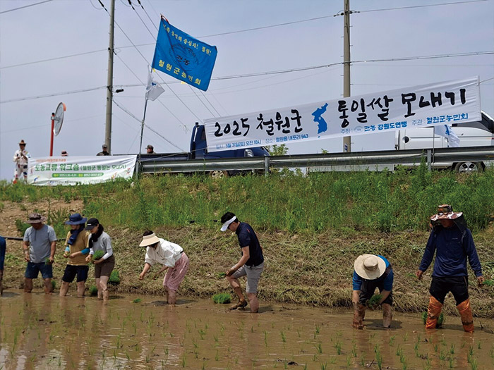 지난 5월에 열린 철원군 통일쌀 모내기 행사에는 여러 시민과 농민이 함께하여