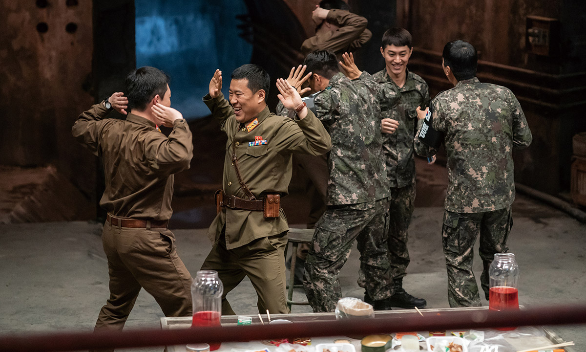 영화 <육사오(6/45)>에서는 만기 전역을 앞둔 육군 병장 박천우(고경표 분)가 주운 로또 1등 당첨 용지가 바람에 날려 인민군 하사 리용호(이이경)의 손에 들어간 뒤 일어나는 일련의 사건들에 의해 이야기가 전개된다. 그런데 박천우 병장과 리용호 하사가 조우하고 이들 주변의 상관과 후임까지 합세하여 관계를 이어가는 곳은 다름 아닌 비무장지대이다. 한반도 중부를 횡단한 채 군사분계선을 따라 형성된 남북 2km씩의 비무장지대는 3년 넘게 지속된 6.25전쟁(1950) 이후의 정전 대치 상황으로 인해 배태된 특수한 공간이다. 때문에 <육사오(6/45)>에서도 이곳은 일차적으로 국군과 인민군 간 대결의 장소라는 공간성을 부여받는다. 하지만 그들은 이내 서로에 대한 경계를 허물고 상호 비방 및 설전 대신에 문제 해결을 위한 협상을 시도한다. 이러한 면에서 비무장지대 안에서도 남과 북의 중간 지점에 위치한 ‘공동급수구역(Joint Supply Area, JSA)’ 내 비밀 장소에서 로또 당첨금을 둘러싼 ‘회담’이 이루어진다는 설정은 특별히 눈에 띈다. 그러면서 영화 속 비무장지대는 대립의 공간이 아닌 대화와 타협을 통한 화해의 공간으로 거듭난다.