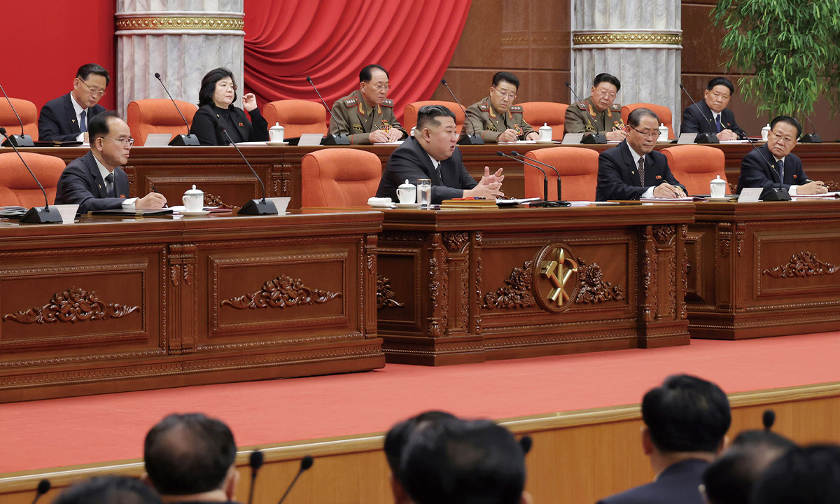 김정은은 2025년 12월 15일, 올해 당 및 국가정책 집행 현황을 평가하고 주요 성과를 개괄했다고 전했다. ⓒ연합뉴스