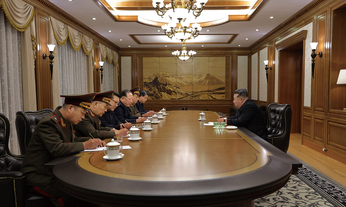 2025년 9월 26일, 김정은은 핵무기연구소를 비롯한 핵관련 분야의 과학자, 기술자들을 만나 핵물질생산 및 핵무기생산과 관련한 중요협의회를 지도하고 있다. ⓒ연합뉴스