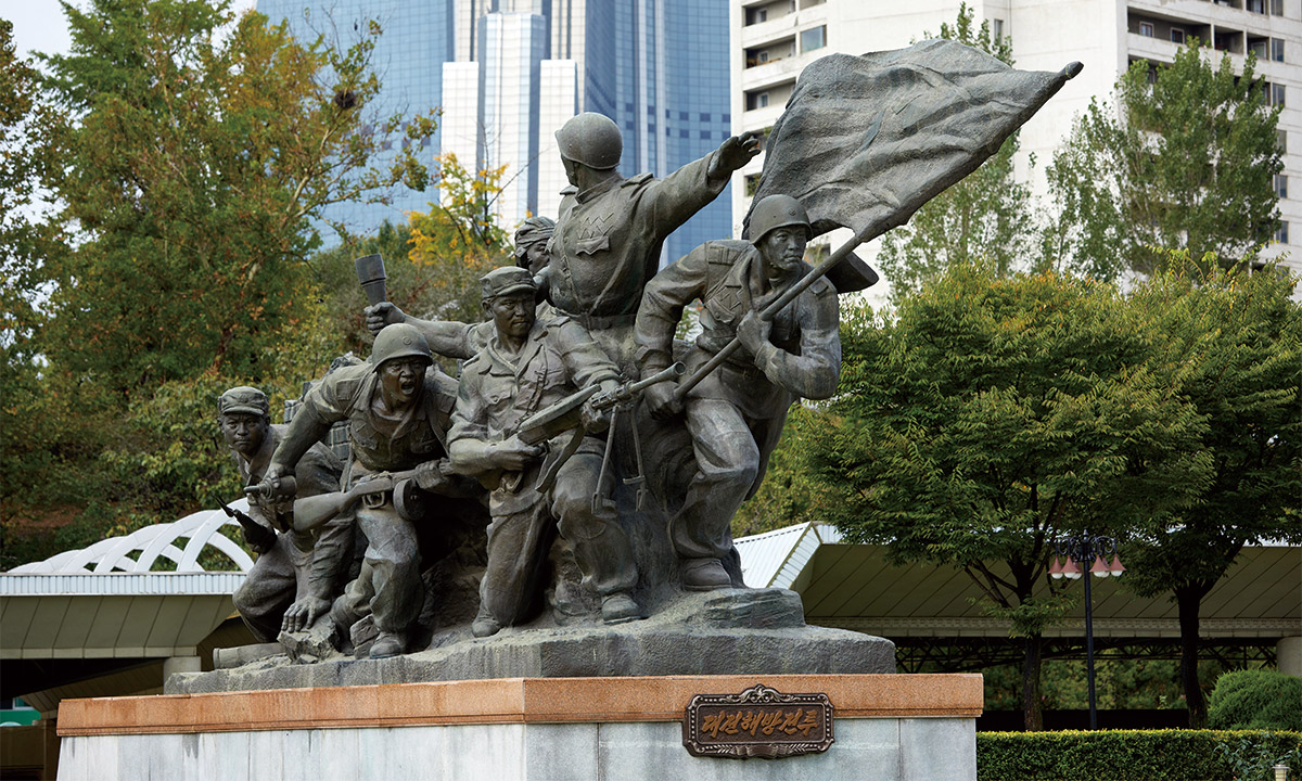 평양 애국해방전쟁박물관의 조형물은 전쟁에서의 승리와 희생을 강조한다. ⓒ셔터스톡