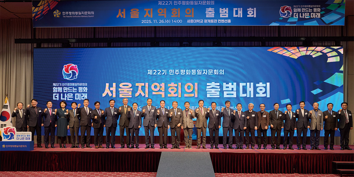 한반도 평화와 공존을 향한 제22기 민주평통의 새로운 여정이 시작됐다. 전국 18개 시·도에서 순차적으로 이어지고 있는 출범대회는 향후 2년간의 활동 방향과 비전을 확인하는 공식적 출발점이다. 11월 26일 세종대학교 광개토관에서 열린 서울지역회의 출범 현장을 찾아, 새롭게 임기를 시작한 자문위원들의 다짐과 열기를 마주했다.